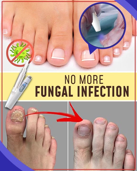 - Tryk på tænd-knappen på anti-svampelaseren, og peg på det udpegede sted.