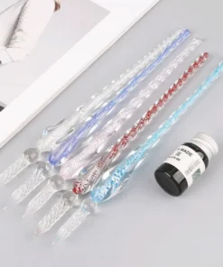 A (3 stk) – Få 1 sæt Crystalyst Glass Pen inkluderer Pen 1 stk + Penholder 1 stk + Ink 1 stk