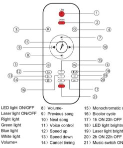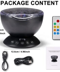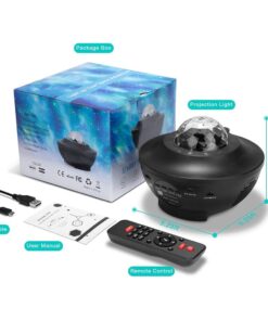 1X LED-projektionslys, 1X fjernbetjening (batteri medfølger ikke), 1X USB-kabel