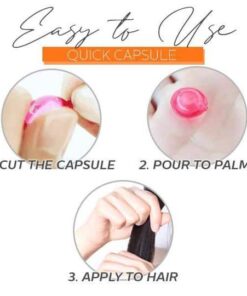 - Tag 1-2 Hairacle™ Vitamin Serum Capsule (afhængigt af hvor tykt eller langt dit hår er) i håndfladen og påfør det jævnt på rødderne af dit hår og hovedbund.
