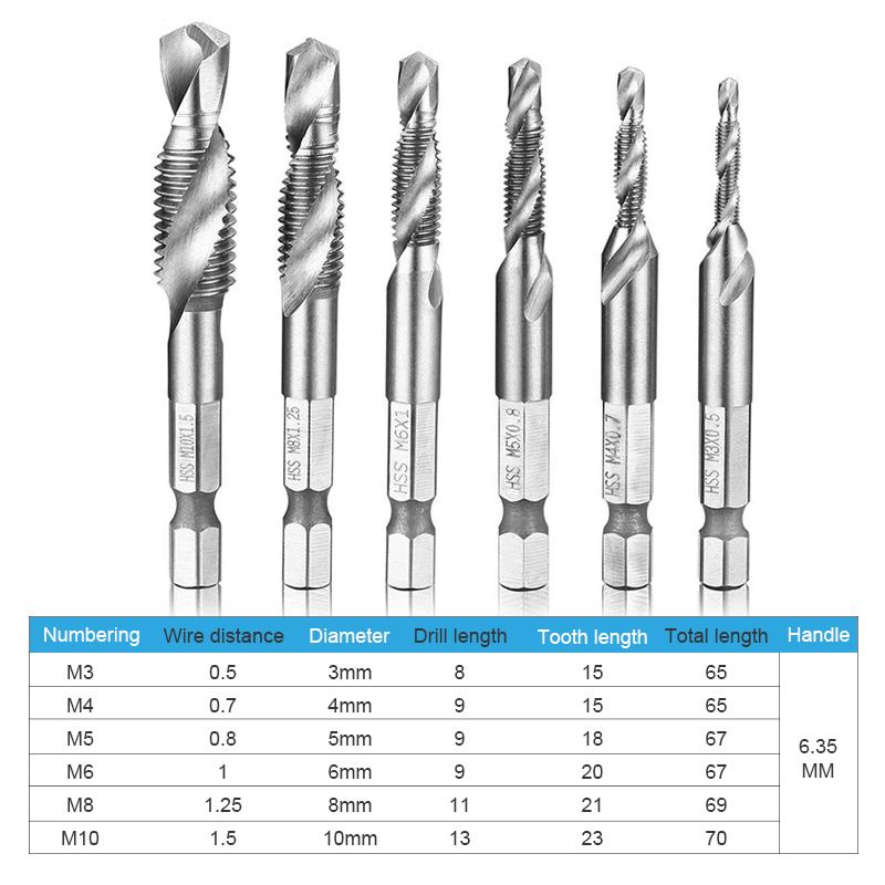 Metriske tapbor 6 STK (M3 – M10)