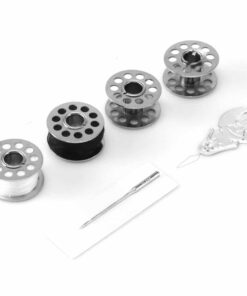 - 1*Symaskine, nål, nåletråder, fodblad, opladeradapter, engelsk brugervejledning, pakkeboks