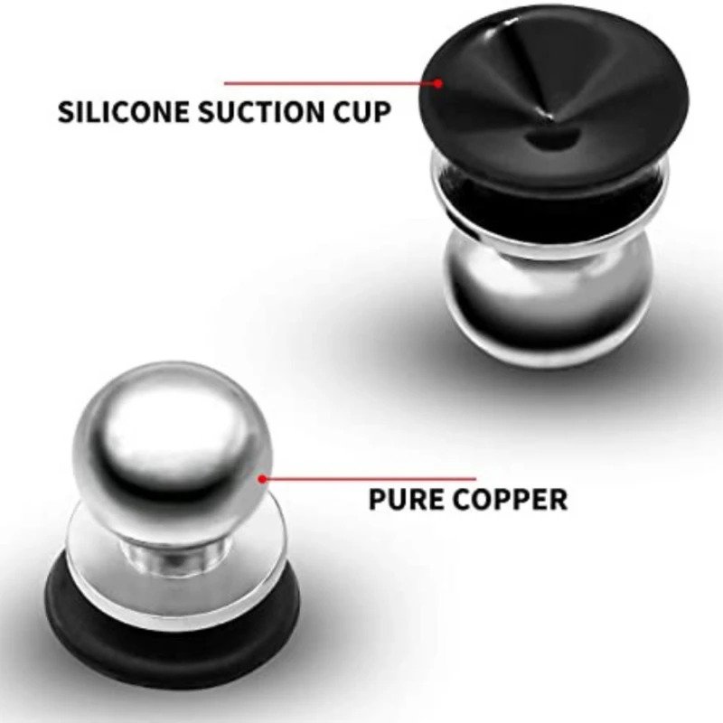 - Materiale: Rene kobberknapper, silikone sugekop
