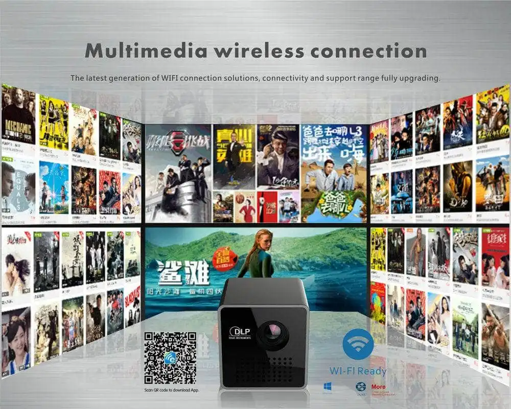 Smart Laser Wi-fi 1080p mobil trådløs projektor har følgende produktfunktioner: